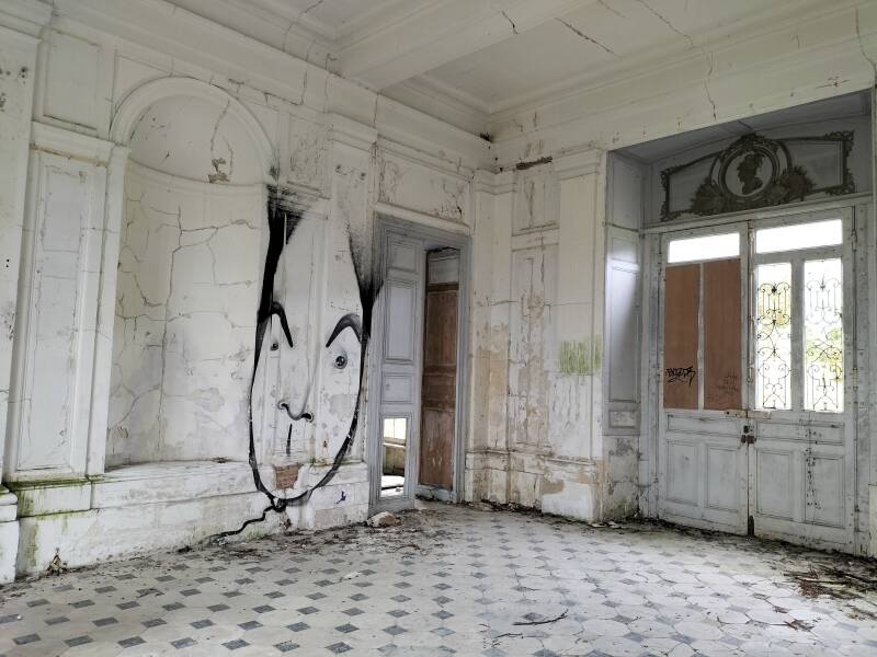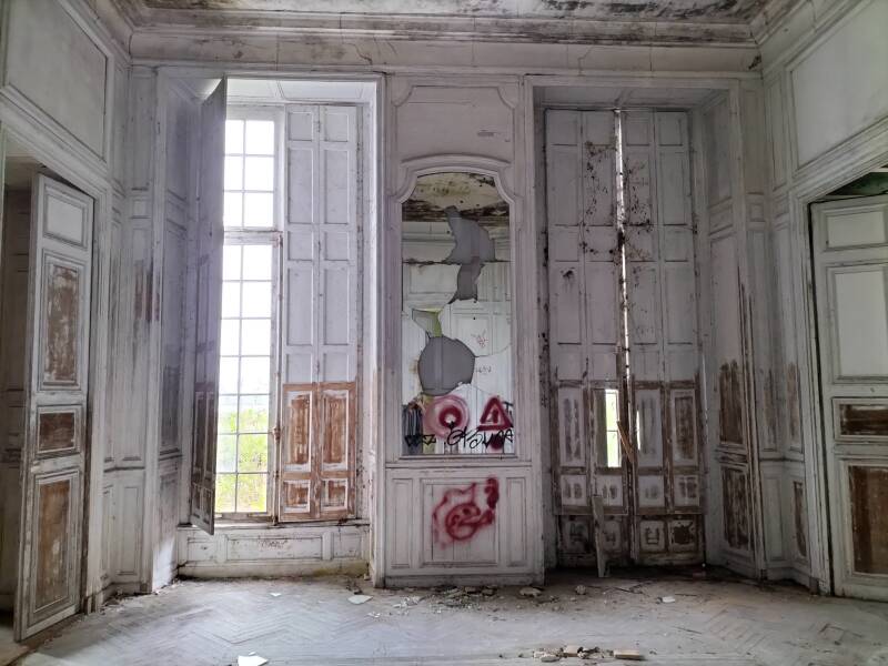 Officieel is het verboden toegang maar de poort staat open dus namen we een kijkje in en rond het kasteel van Tancarville.